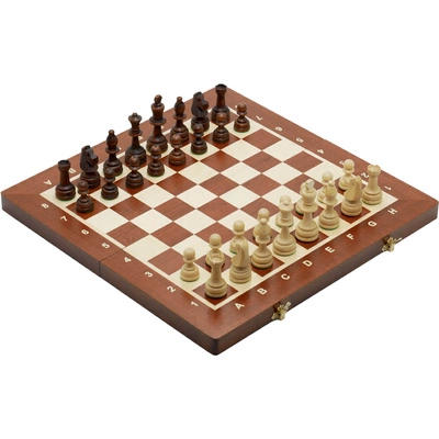 Szachy magnetyczne - drewniane średnie 28 cm - w zestawie z torbą szachową