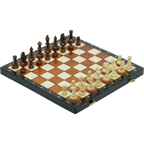 Szachy magnetyczne Mahoń - drewniane średnie 27 cm - w zestawie z torbą szachową