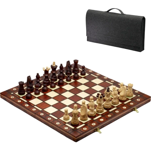 Szachy rzeźbione drewniane z torbą szachową