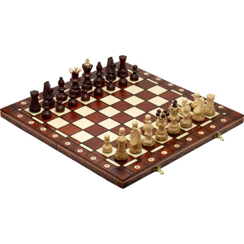 Szachy rzeźbione Królewskie - drewniane małe 28 cm